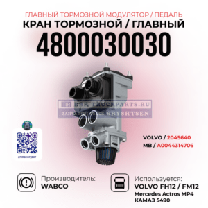 Главный тормозной кран, Кран тормозной (Педаль), WABCO, 4800030030